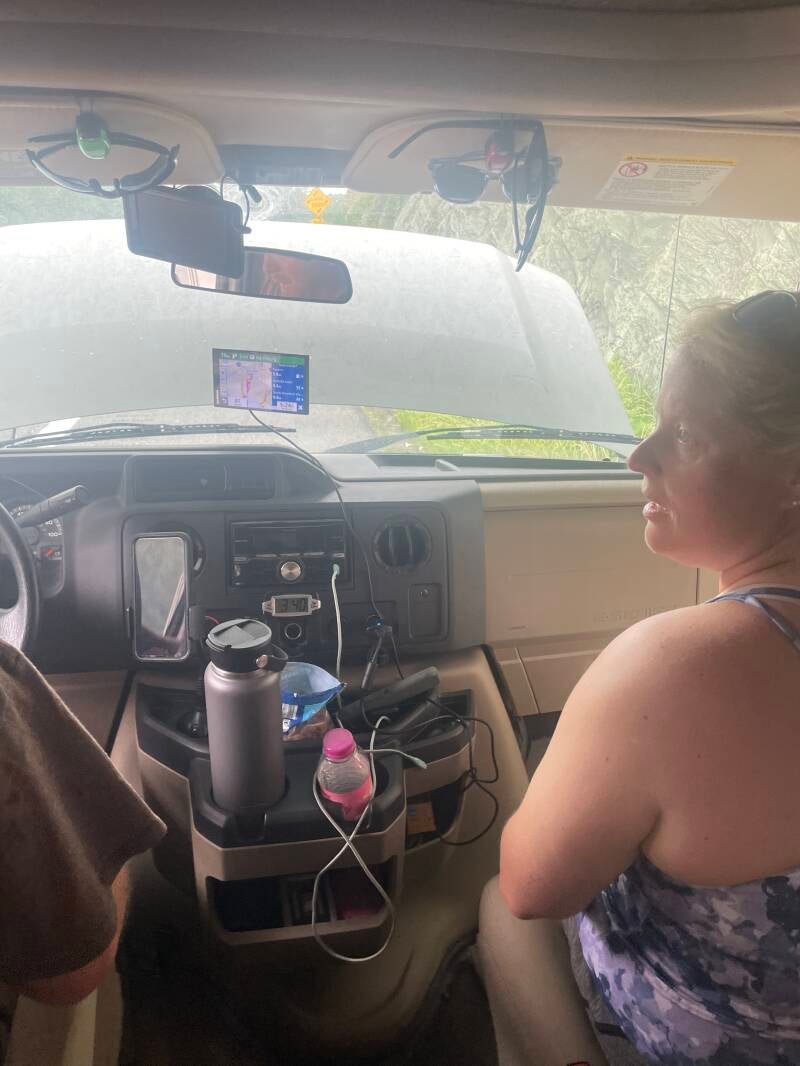 So ... just a minor little hiccup. 100 plus degrees outside. Going up the mountains in Western Maryland with a fully loaded camper. She got a little overheated and started smoking pretty good. But after a sudden downpour, and a little rest, she cooled down and we were good to go. Hopefully that's the only issue we'll have.